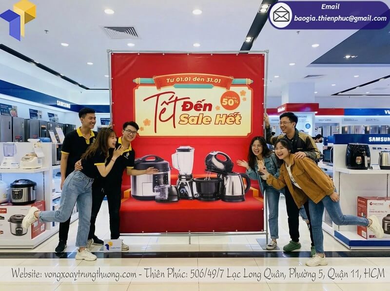 Việc sản xuất trực tiếp tại xưởng giúp tối ưu chi phí và đảm bảo chất lượng đồng đều cho từng đơn hàng backdrop di động.