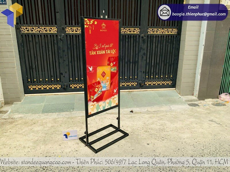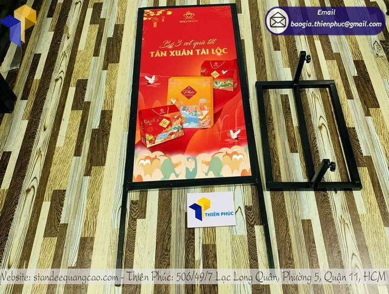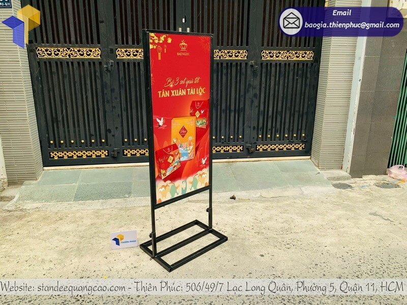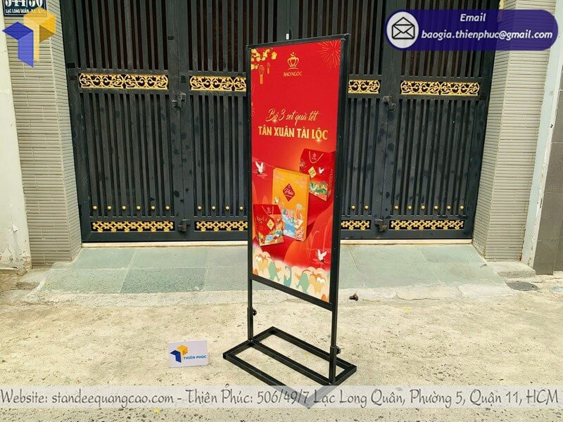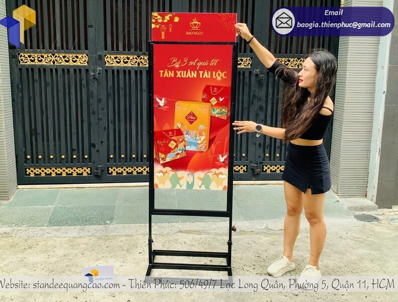 Đặc biệt trong dịp Tết, khi cần truyền tải thông điệp về chương trình khuyến mãi, combo quà tặng, hay sản phẩm đặc biệt mùa lễ hội, bảng đứng với kích thước lớn (từ 120cm đến 200cm) đảm bảo thông tin được nhìn thấy rõ ràng từ xa.
