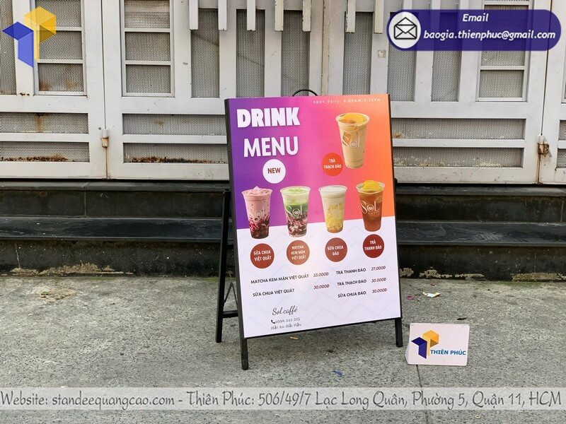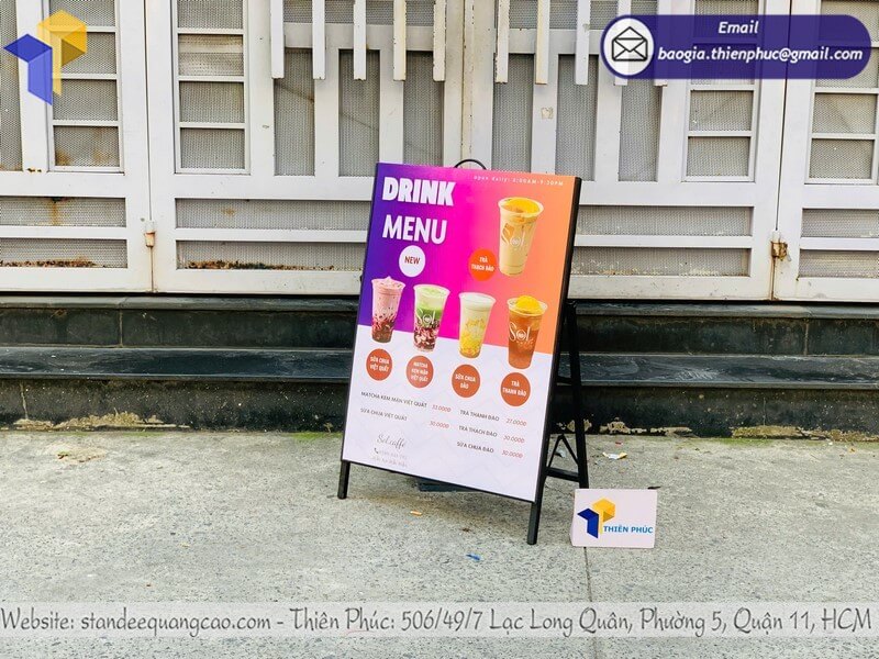 Trong các mô hình kinh doanh hiện nay như quán cafe, trà sữa, quán ăn, nhà hàng hay các điểm bán di động, việc hiển thị menu rõ ràng và thu hút là yếu tố ảnh hưởng trực tiếp đến quyết định mua của khách hàng. Bảng menu chân đứng vì thế trở thành giải pháp trưng bày được nhiều đơn vị lựa chọn nhờ sự linh hoạt, gọn nhẹ và hiệu quả trong việc truyền tải thông tin sản phẩm.