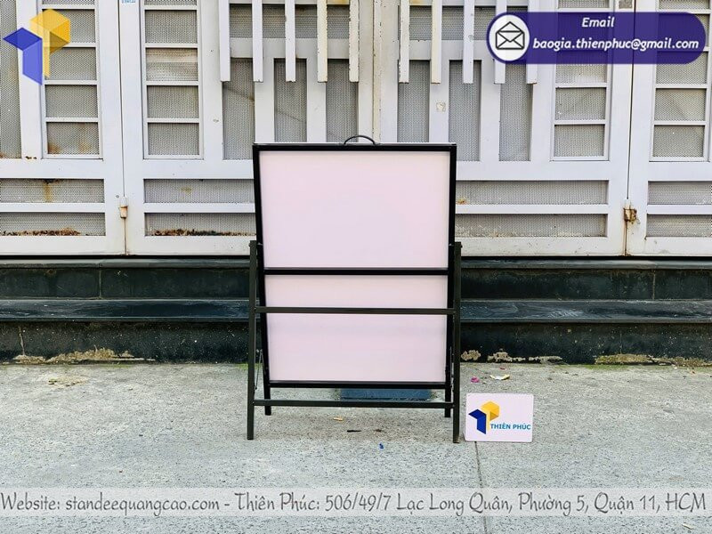 Bên cạnh đó, kiểu dáng gọn nhẹ giúp bảng không chiếm quá nhiều diện tích, đặc biệt phù hợp với các mặt bằng nhỏ, quán take away hoặc gian hàng lưu động. Việc trưng bày menu ở vị trí dễ nhìn cũng giúp giảm thời gian tư vấn, tăng tốc độ gọi món và nâng cao trải nghiệm khách hàng.