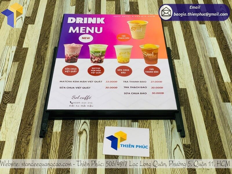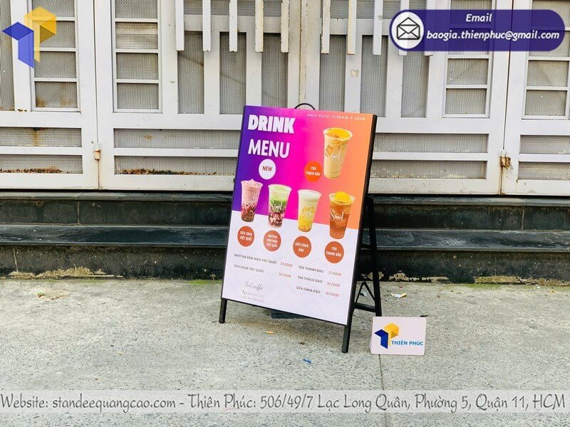 Liên hệ đặt làm bảng menu chân đứng để tối ưu không gian và tăng hiệu quả trưng bày ngay từ hôm nay 0947.893.139 - 0903.897.980.