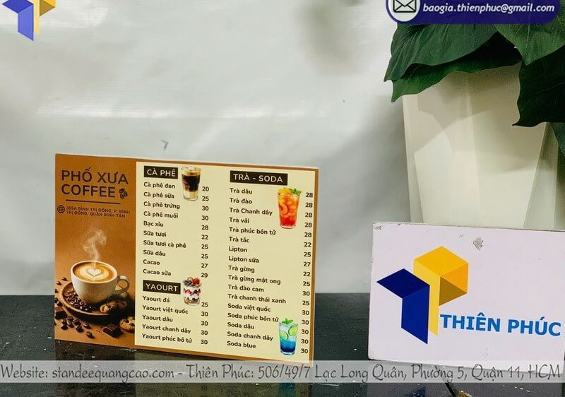 Liên hệ ngay để được tư vấn mẫu bảng menu mica để bàn phù hợp với không gian quán của bạn 0947.893.139 - 0903.897.980.