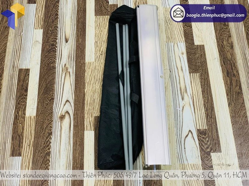 Điểm mạnh tạo nên sự nổi bật của banner cuốn nhôm nằm ở thiết kế gọn nhẹ nhưng vô cùng chắc chắn. Thân khung làm từ nhôm cao cấp, giúp tổng trọng lượng nhẹ hơn so với nhiều loại banner truyền thống, từ đó người dùng có thể dễ dàng mang theo khi cần di chuyển giữa nhiều địa điểm.