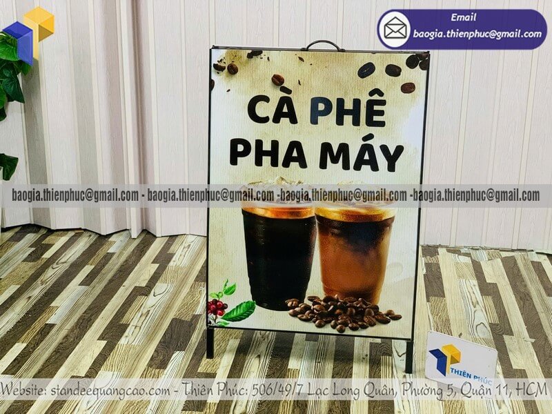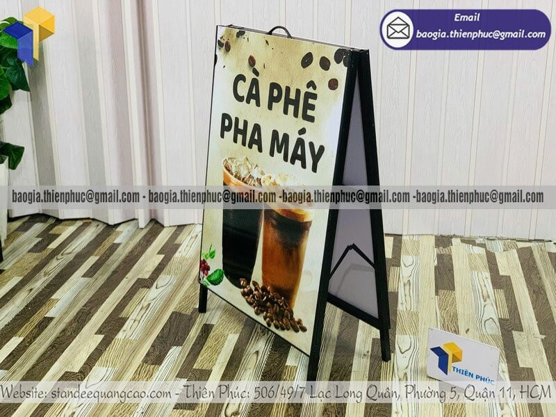 Trong thực tế triển khai quảng cáo trực tiếp tại điểm bán, standee chữ A luôn nằm trong nhóm vật phẩm mang lại hiệu quả nhanh nhất. Với thiết kế dạng khung gập hai mặt, sản phẩm cho phép hiển thị thông tin rõ ràng từ nhiều hướng di chuyển của khách hàng.