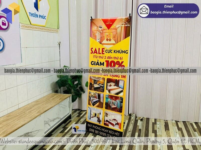 Trong thực tế triển khai, nhiều doanh nghiệp lựa chọn các hình thức quảng cáo gọn nhẹ để tiết kiệm thời gian setup mà vẫn tạo điểm nhấn tại điểm bán. Một trong những sản phẩm được sử dụng phổ biến chính là standee chữ X.