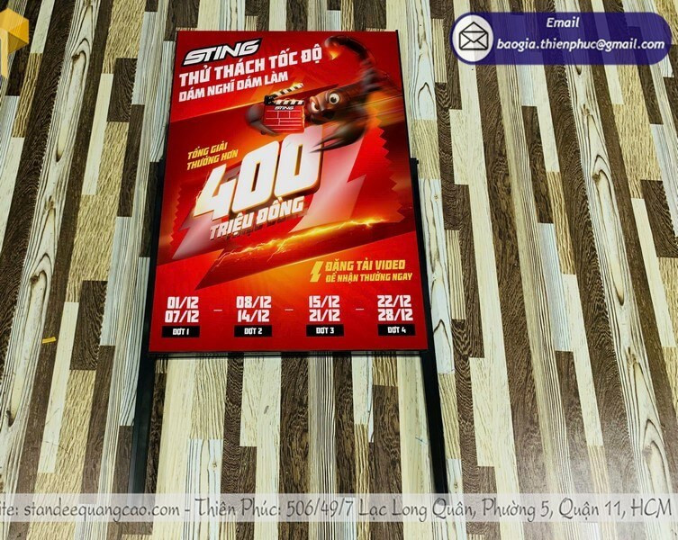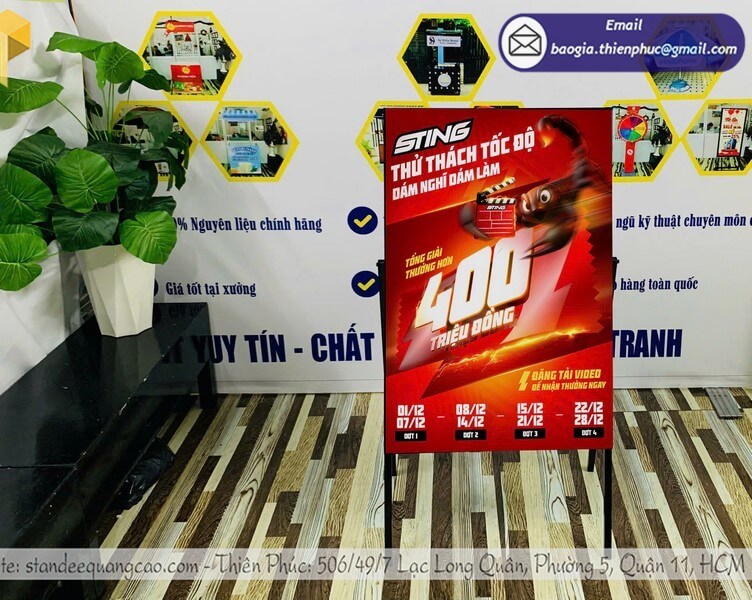- Đảm bảo chất lượng in ấn và khung standee