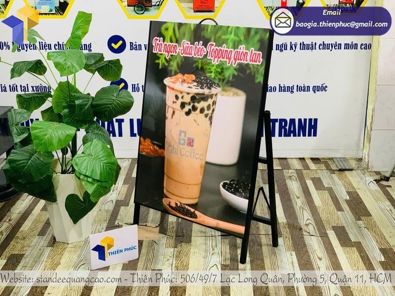 - Standee khung sắt hoặc nhôm: Độ bền cao, sử dụng ngoài trời hiệu quả.