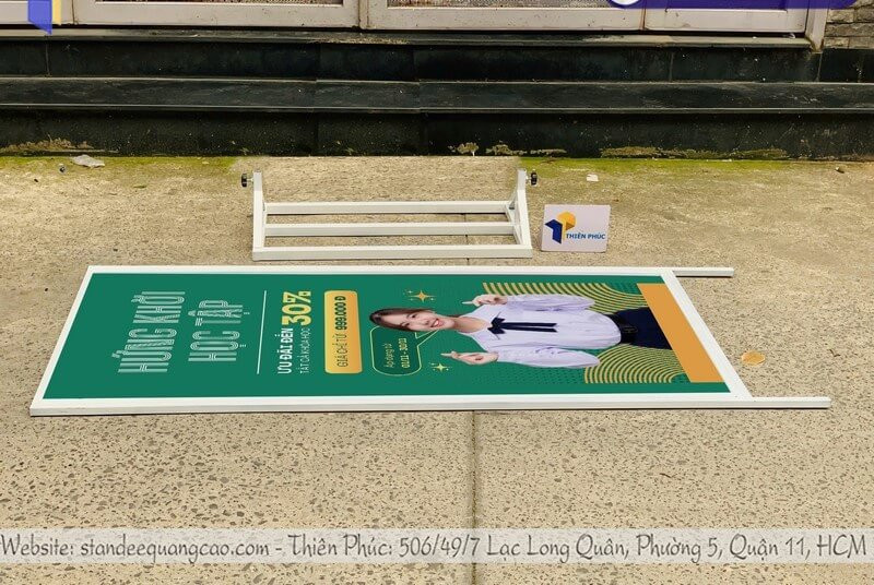 Khung nhôm hoặc sắt giúp standee đứng đứng vững, dễ lắp đặt và di chuyển. Một khung chắc chắn giúp bảo vệ poster hoặc banner in trên standee, tăng độ bền và đảm bảo thông điệp luôn hiển thị đẹp mắt.