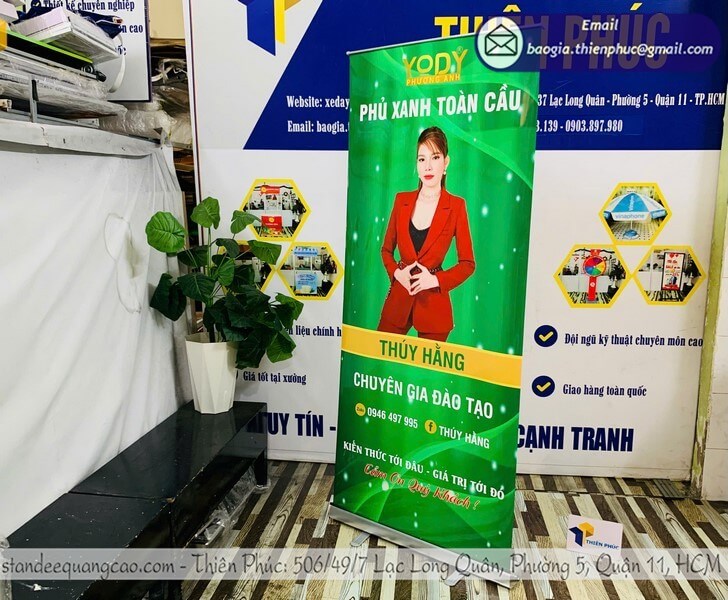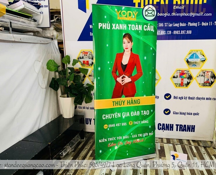 Với thiết kế cuốn gọn, loại này phù hợp cho các sự kiện chuyên nghiệp, hội thảo, showroom. Khi kết hợp in standee lấy ngay, sản phẩm vừa đẹp vừa tiện thao tác.