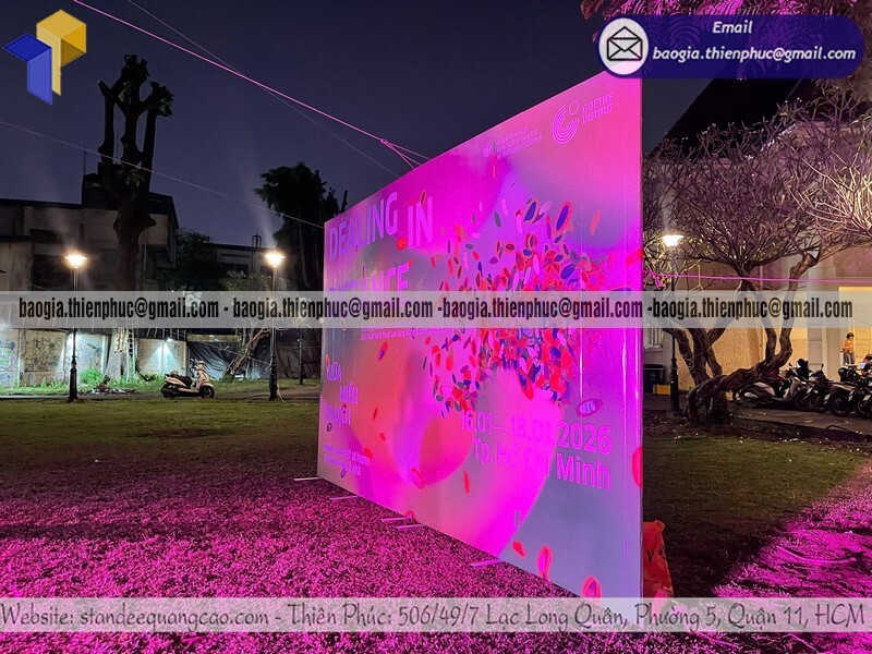 Trong bối cảnh các sự kiện, activation, khai trương, roadshow ngày càng đòi hỏi tính chuyên nghiệp và tốc độ triển khai nhanh, nhu cầu thi công backdrop tận nơi tại TP.HCM đang tăng mạnh. Không chỉ đơn thuần là dựng một phông nền, backdrop ngày nay còn là yếu tố định hình hình ảnh thương hiệu, thu hút ánh nhìn và tạo điểm nhấn xuyên suốt chương trình.