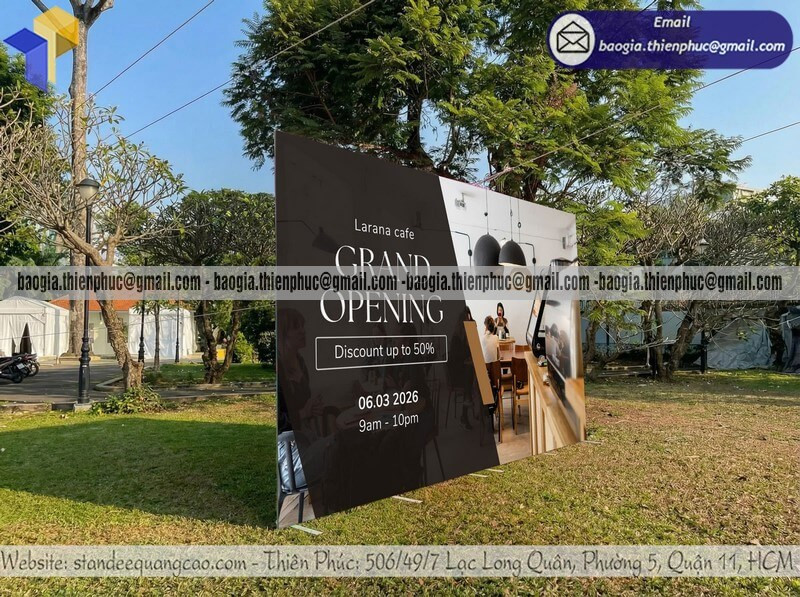 Thường được sử dụng cho hội nghị, lễ ra mắt, talkshow, sự kiện nội bộ. Thiết kế tập trung thể hiện logo, thông điệp và hình ảnh chủ đạo, đảm bảo khả năng hiển thị rõ từ xa.