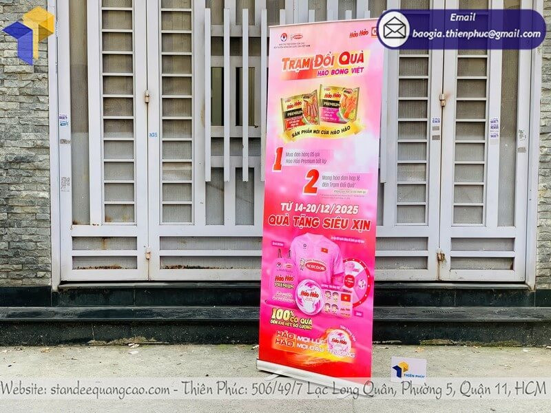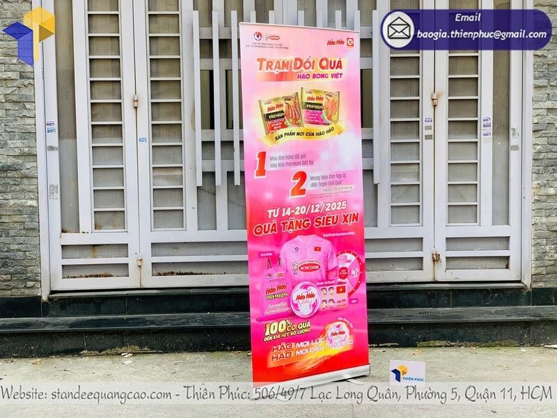 Và cuối cùng, mua tại xưởng còn giúp bạn dễ dàng đặt số lượng lớn với giá standee cuốn nhôm ưu đãi, phù hợp cho doanh nghiệp, agency hoặc đơn vị tổ chức sự kiện thường xuyên.