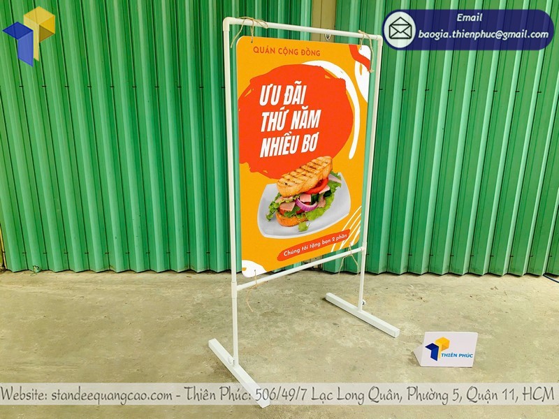 - Đa dạng ứng dụng: Từ quảng bá sản phẩm, menu quán, chương trình khuyến mãi đến sự kiện ngoài trời, standee đều phát huy hiệu quả tối đa.