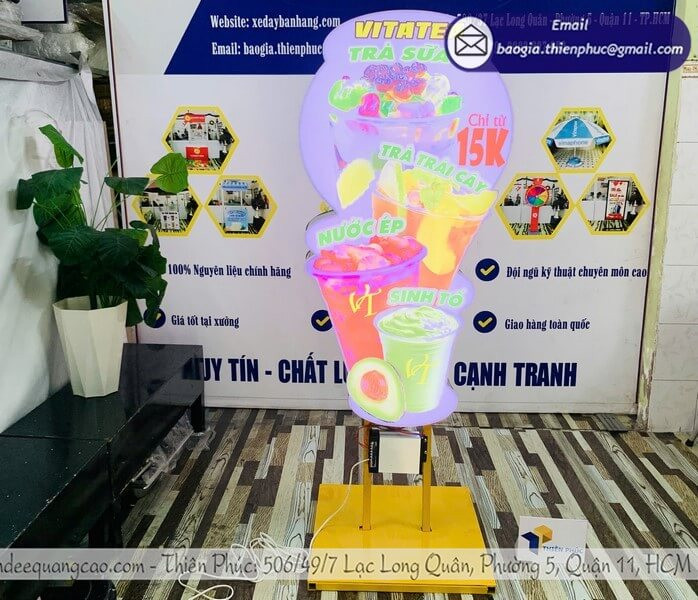 Hộp đèn ly trà sữa là sản phẩm chiếu sáng quảng cáo được thiết kế dưới dạng ly trà sữa có đèn LED bên trong, thường dùng để hiển thị logo, hình ảnh hoặc thông điệp khuyến mãi. Sản phẩm này xuất hiện phổ biến trong các quán trà sữa, café, showroom, và các sự kiện ngoài trời.