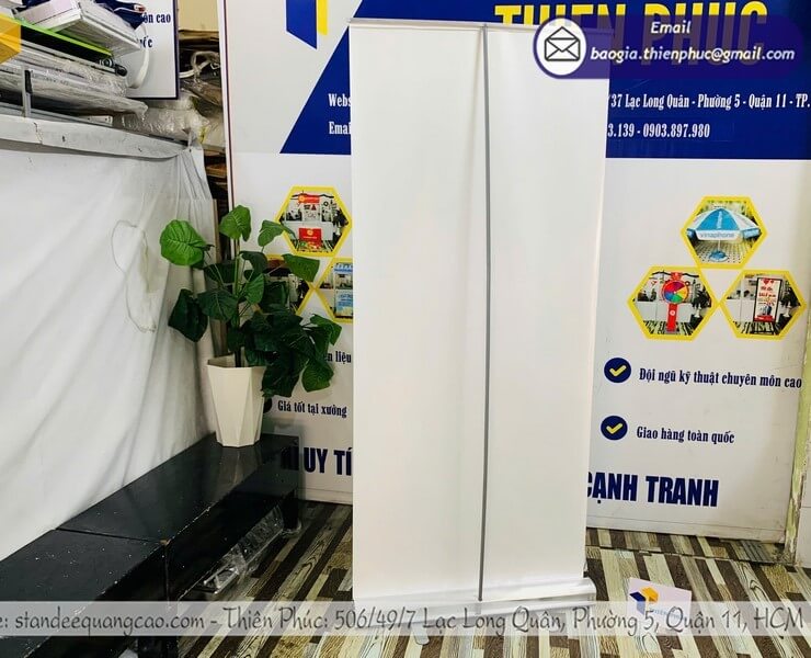 Độ bền cao, sang trọng, phù hợp cho hội nghị, hội thảo, showroom và văn phòng. Dù giá nhỉnh hơn một chút nhưng vẫn nằm trong mức in standee giá rẻ so với hiệu quả mang lại.