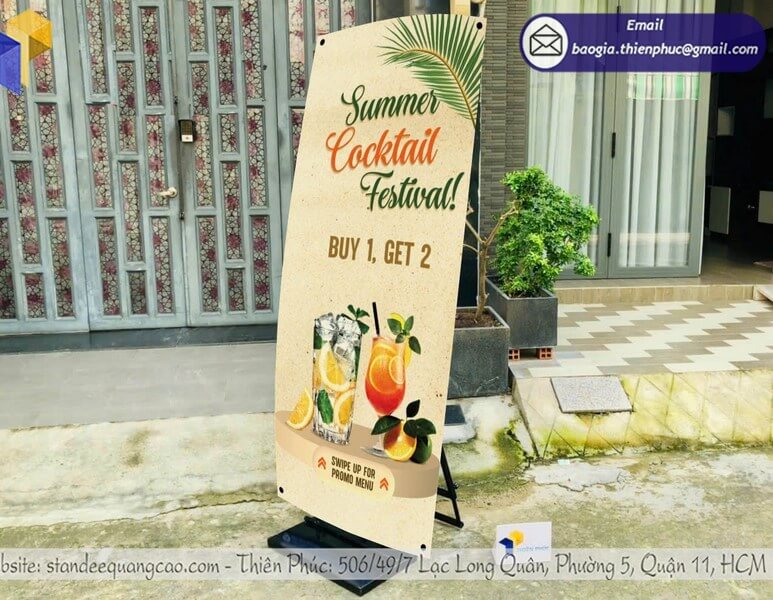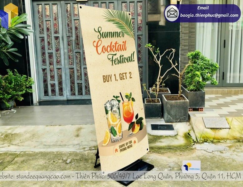 - Standee X, standee cuốn (roll up), standee chữ L