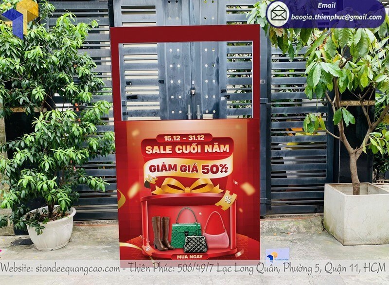 - Khung check in mica – alu: Bề mặt sang trọng, thường dùng cho lễ ra mắt sản phẩm hoặc sự kiện cao cấp.