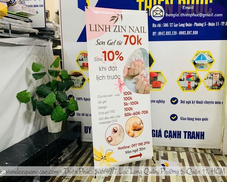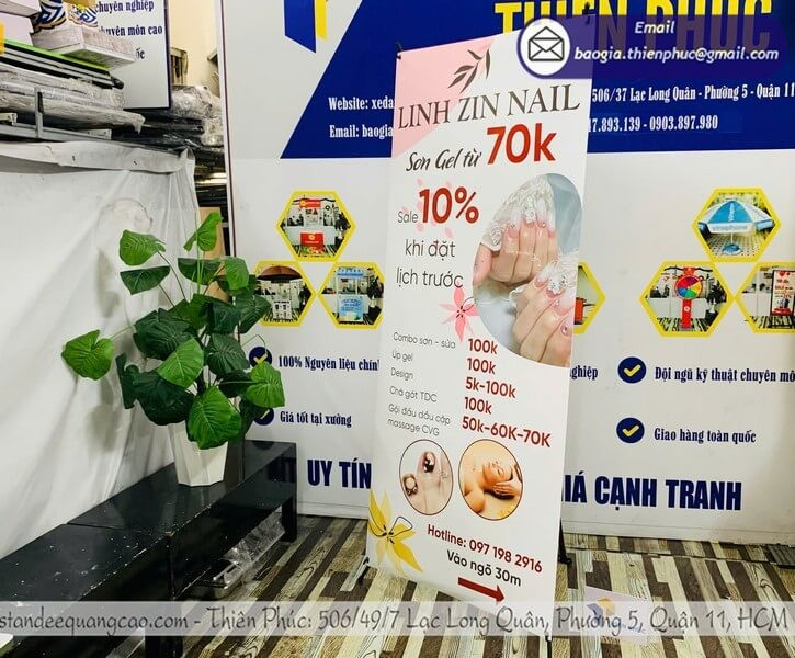 Các cửa hàng điện thoại, showroom xe máy, shop thời trang, cửa hàng tiện lợi, spa… đều sử dụng khung standee chữ X để giới thiệu khuyến mãi, sản phẩm mới hoặc combo dịch vụ.