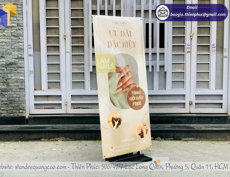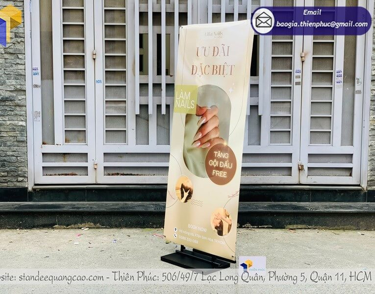 Nhờ cấu trúc này, standee vẫn giữ được sự gọn gàng nhưng có khả năng đứng vững lâu dài. Không giống các loại standee trong nhà chỉ phù hợp không gian kín, standee cản gió ngoài trời được sinh ra để hoạt động bền bỉ trong môi trường khắc nghiệt hơn.