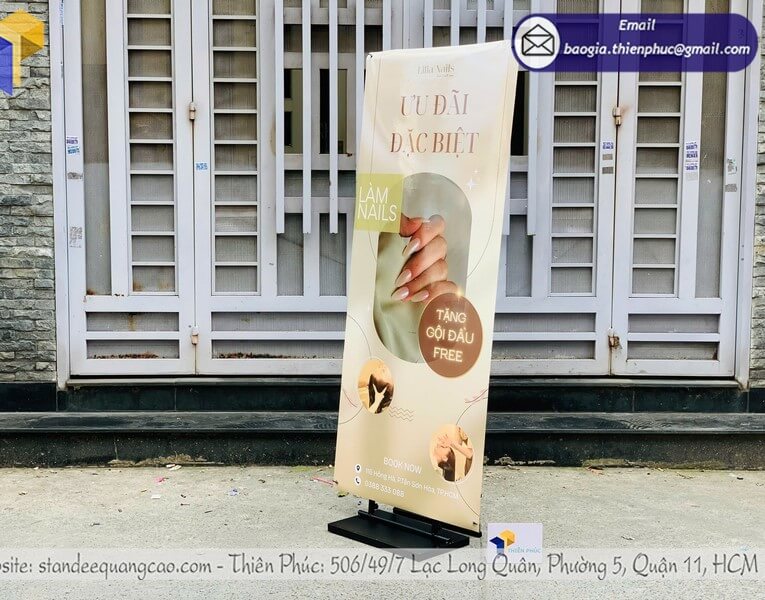 Standee đứng vững hạn chế rủi ro ngã đổ, đảm bảo an toàn cho khách hàng và nhân viên tại khu vực trưng bày.