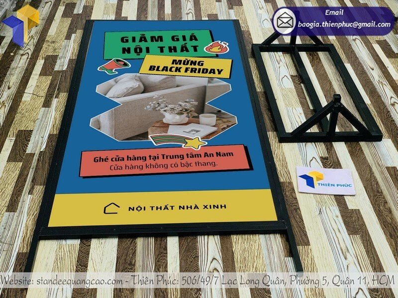 Với kết cấu chắc chắn và thiết kế thông minh, standee khung sắt 2 mặt không chỉ giúp truyền tải thông điệp rõ ràng mà còn mang lại hình ảnh chuyên nghiệp, tăng khả năng nhận diện thương hiệu tại mọi vị trí. Đây là lý do sản phẩm này ngày càng được ưu tiên khi setup không gian quảng cáo.