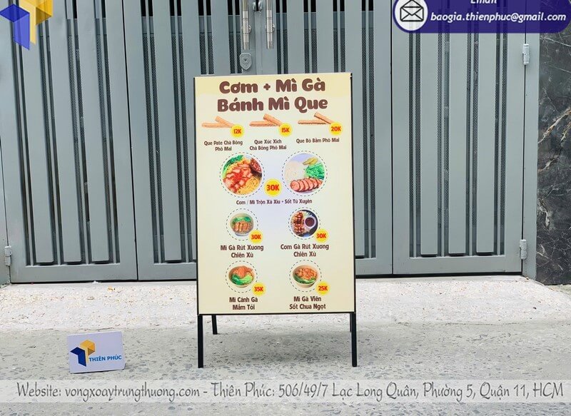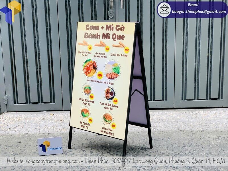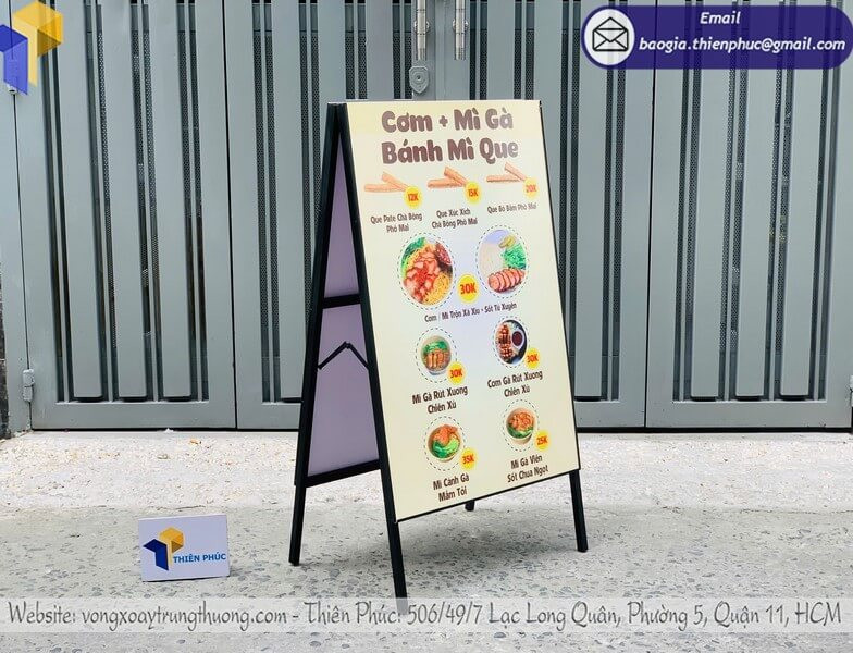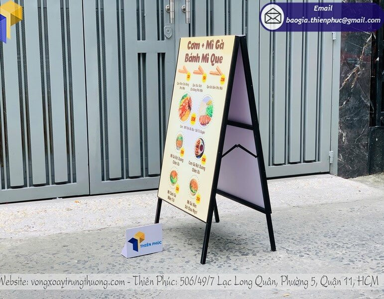Nhờ kết cấu đơn giản nhưng thông minh, standee khung sắt chữ a giúp doanh nghiệp truyền tải thông điệp nhanh chóng, rõ ràng và linh hoạt thay đổi nội dung theo từng chiến dịch.
