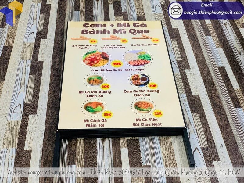 - Trưng bày menu, bảng giá tại quán ăn, quán cà phê