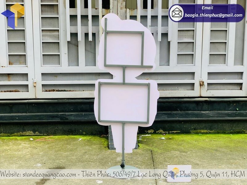 Với khả năng tùy biến linh hoạt, standee mô hình nhân vật có thể được thiết kế theo phong cách riêng của từng thương hiệu, từ hiện đại, đáng yêu, đến sang trọng. Mỗi mô hình là một câu chuyện thương hiệu được kể bằng hình ảnh.