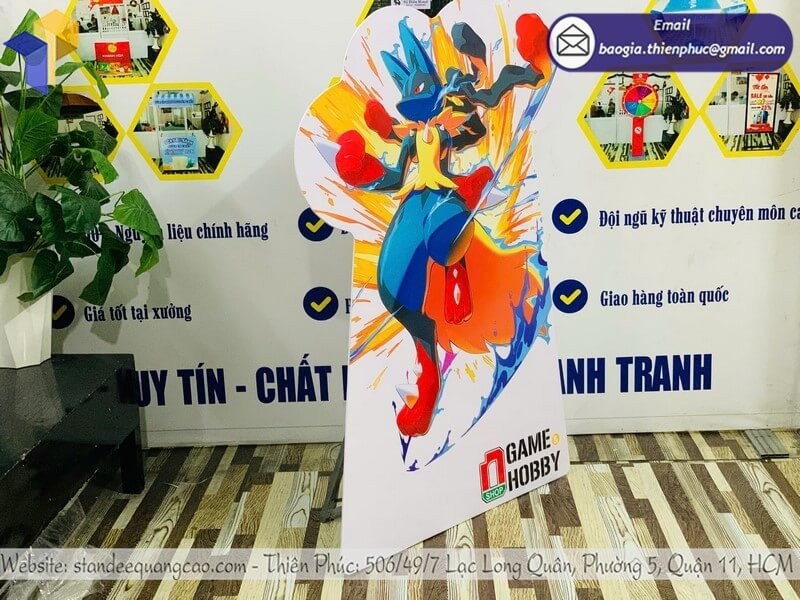 Có thể làm standee mô hình nhân vật 2D, 3D, viền LED, phủ bóng UV theo yêu cầu.