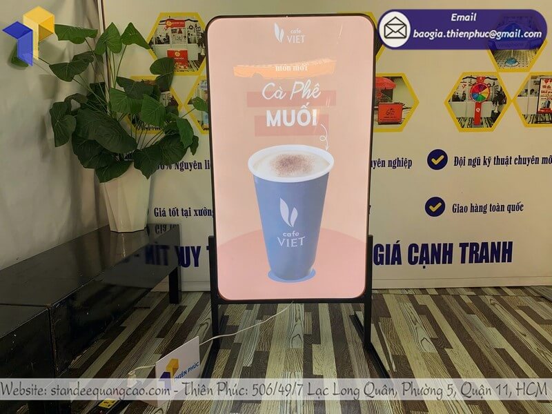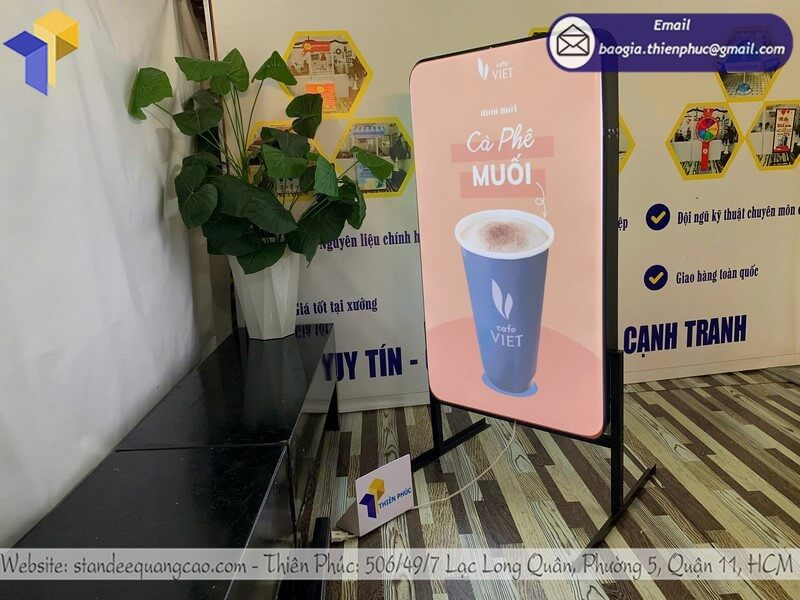 - Kích thước phù hợp: Chọn kích thước tương thích với không gian đặt biển và khoảng cách khách hàng nhìn thấy.
